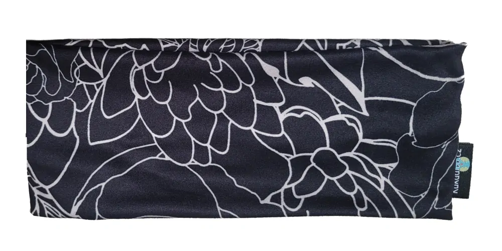 Dámská čelenka ŠIROKÁ - černá - bílé květy