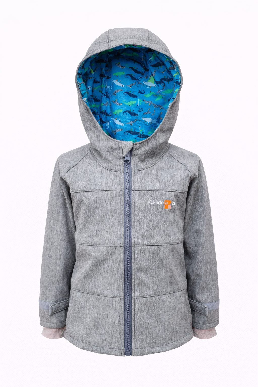Dětská softshellová bunda - šedý melír - chameleoni - doprodej 110, 116764 Kč/ ks