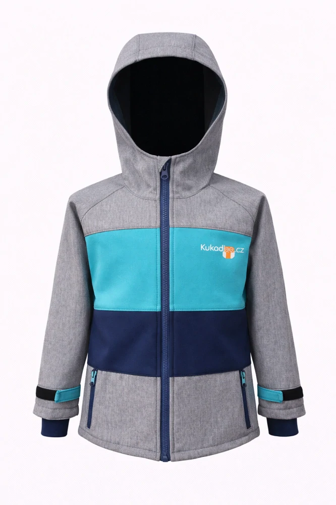 Dětská softshellová bunda - šedý melír-tyrkysovo-tmavě modrá998 Kč/ ks