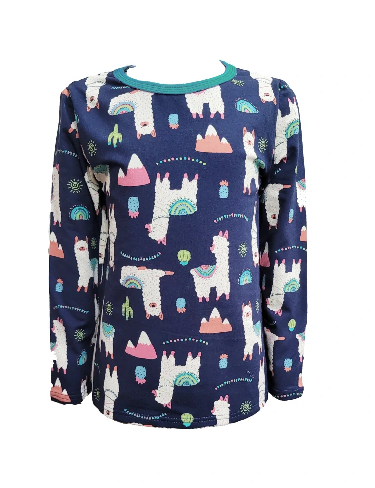 - Dětské tričko dlouhý rukáv -tm. modré - lamy