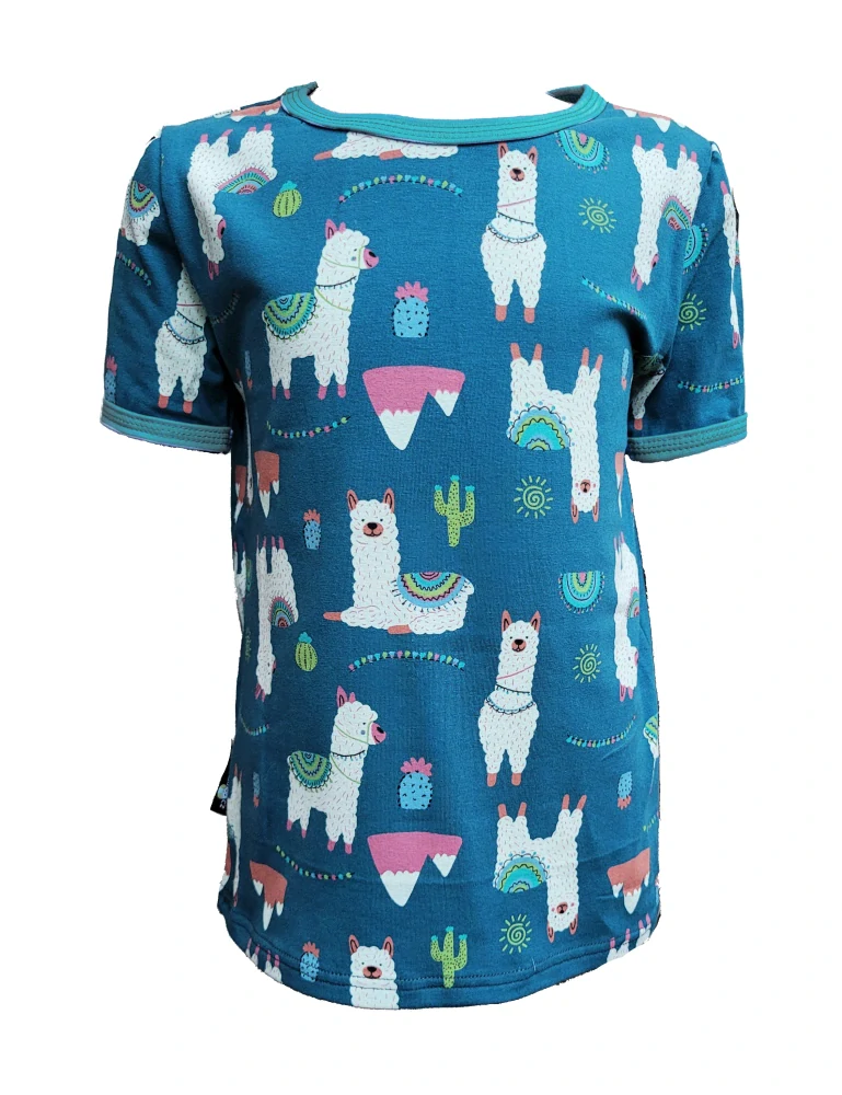 Dětské tričko krátký rukáv -petrolejové - lamy