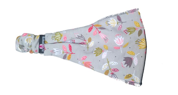 - Dívčí čelenko-šátek/ šedý - tulipánky/ 11cm