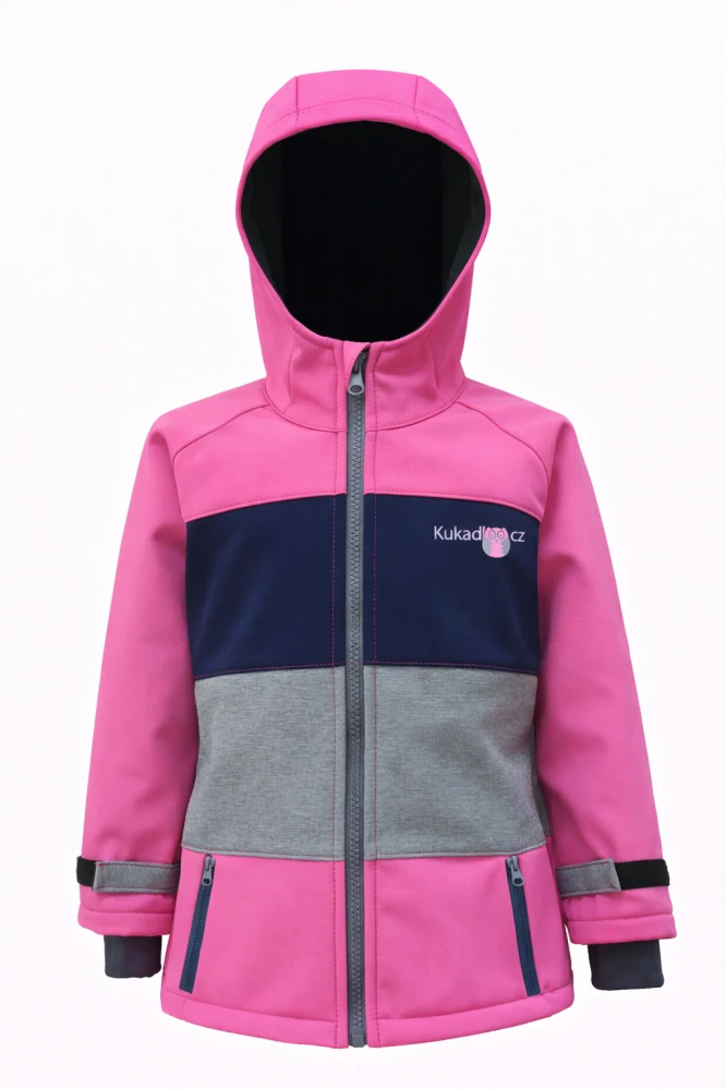 - Dívčí softshellová bunda / sv.růžovo-tm.modro-šedý melír - doprodej