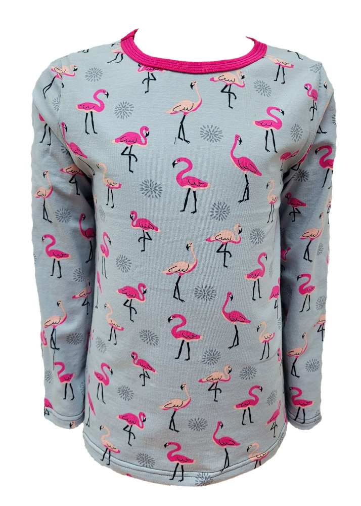 Dívčí tričko dlouhý rukáv - sv. šedé - plameňáci